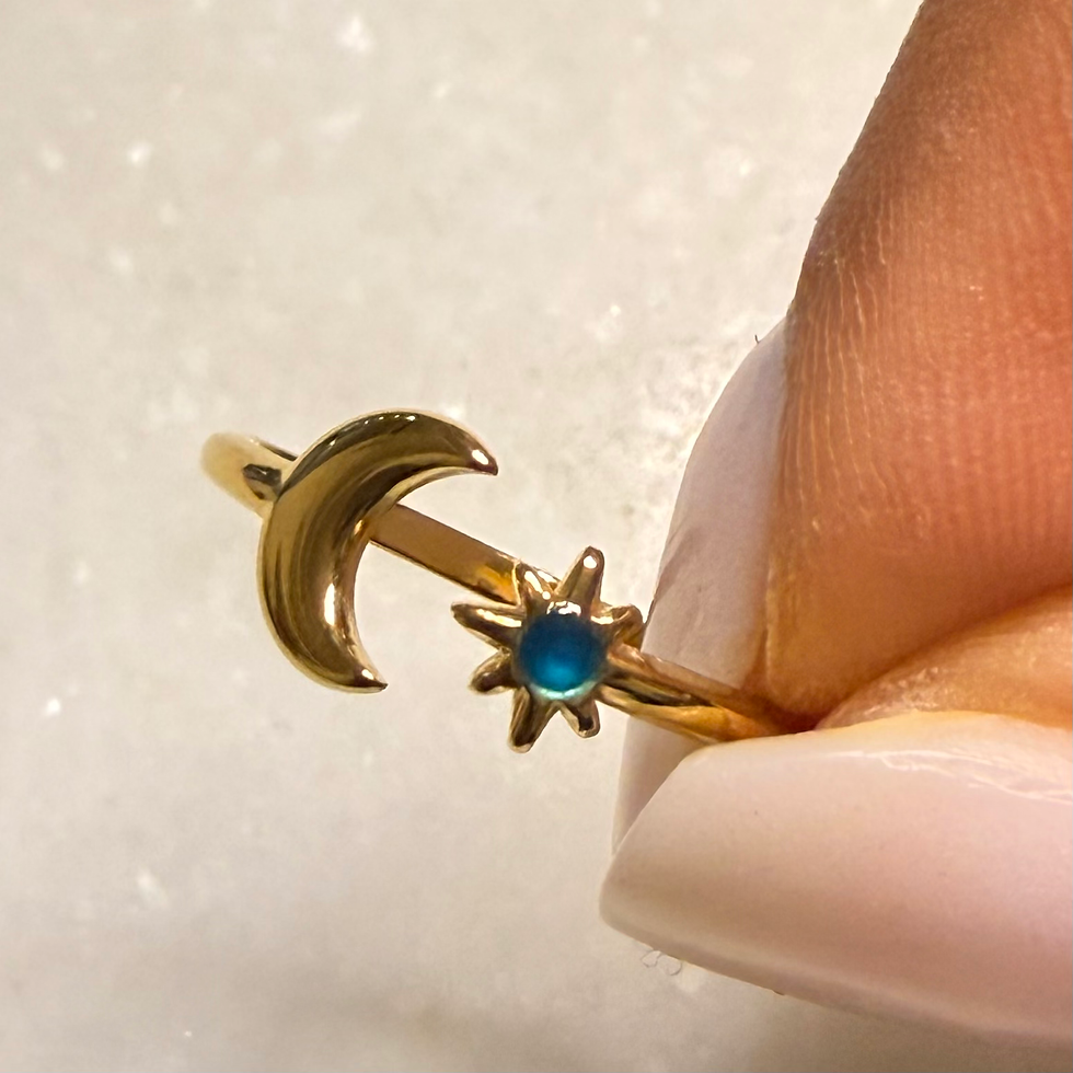 Mini Moon Star | Stainless Steel Adjustable Ring