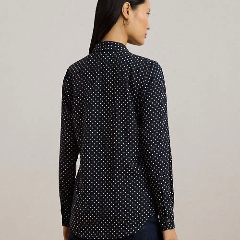 Ralph Lauren Women’s Polka Dot Georgette Navy Tie-Neck Blouse