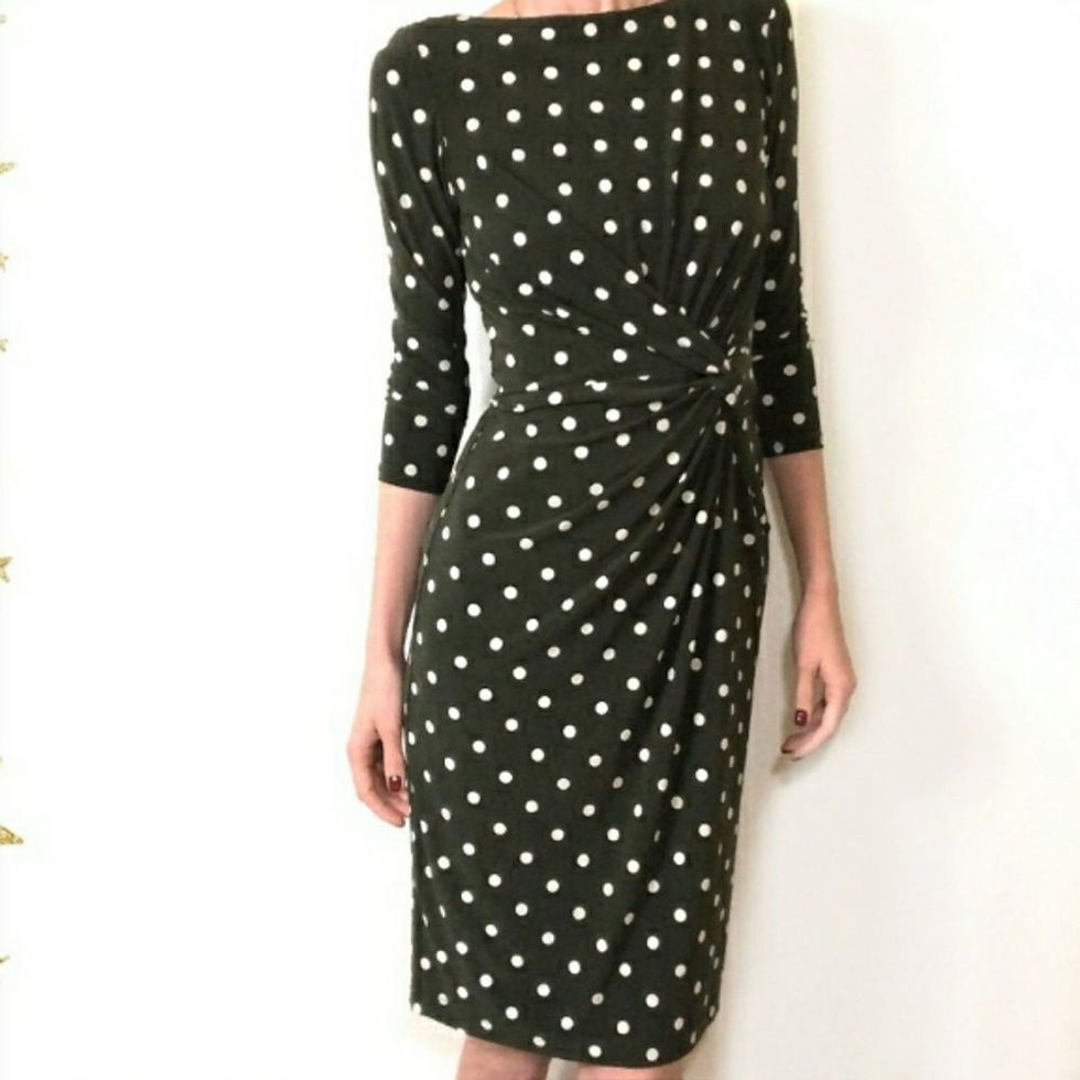 Ralph Lauren Olive Green Polka Dot Cowl Neck Dress