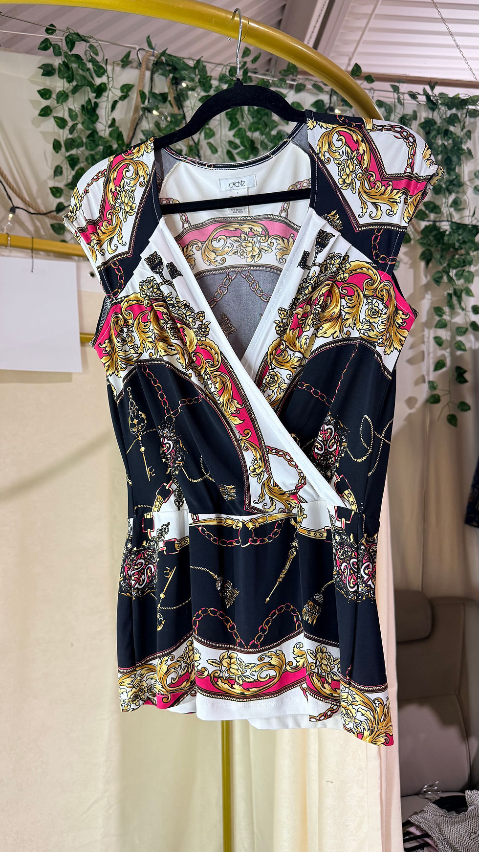 Vintage Cache Y2K Gold Baroque Pattern Wrap-Front Blouse- S