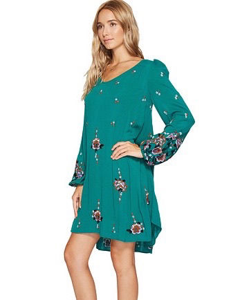 Free People Jade Green Oxford Embroidered Tunic Dress-S