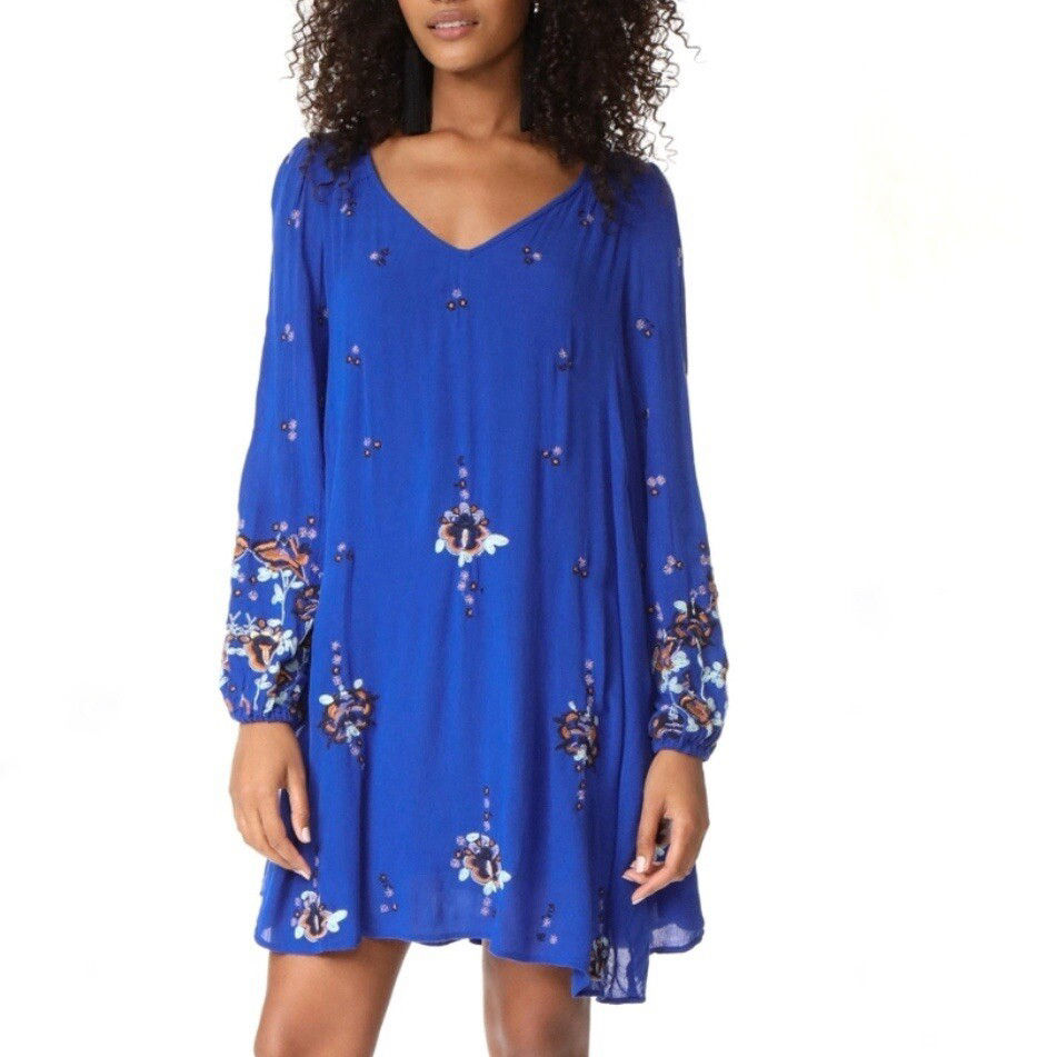 Free People Cobalt Blue Oxford Embroidered Shift Dress- S